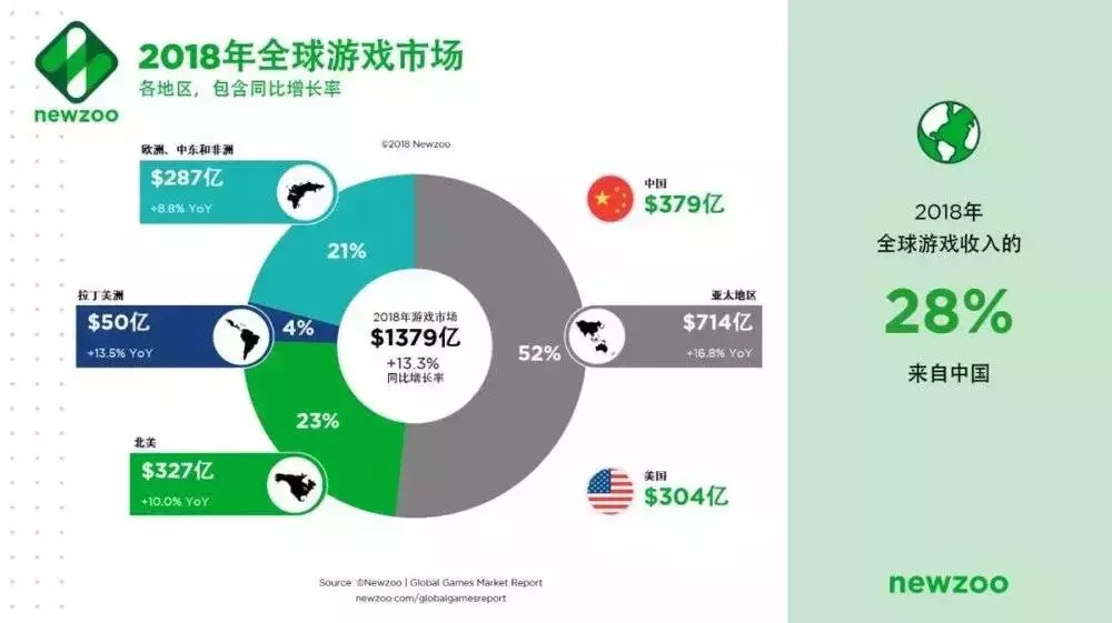 2018年,中国游戏产业在整体收入上的增幅明显放缓。报告显示,中国游戏市场实际销售收入达2144.4亿元,同比增长5.3%。2018年中国游戏市场实际销售收入占全球游戏市场比例约为23.6%。2018年中国自主研发网络游戏市场实际销售收入达1643.9亿元,同比增长17.6%。