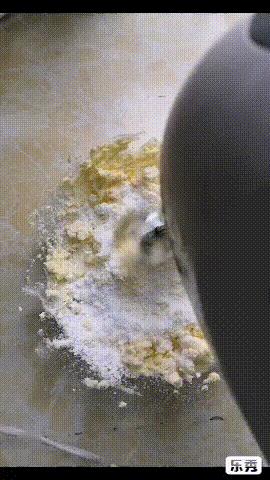 所有蛋黄全部和黄油融合后,把低筋粉和奶粉过筛倒进去,不用打发,翻拌抓揉成面团,放冰箱冷藏1小时。