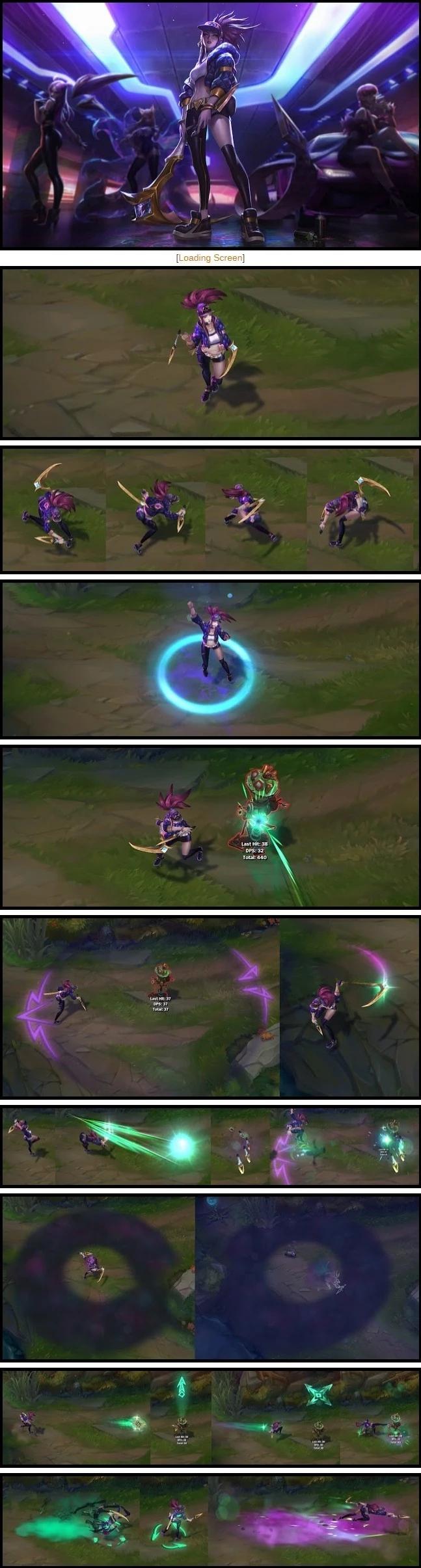 阿卡丽的武器闪耀着外星能量。她只狩猎那些值得进行一场生与死的危险游戏的猎物。她可在任意时间从任意地点发起攻击,没有什么能够逃过被她挂在藏品墙上的命运。
