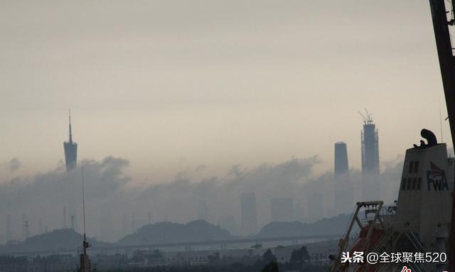 2014年05月20日在新沙港区西北方向,两台桥吊中间的远处清晰地看到广州“小蛮腰”和西塔东塔,大家都纷纷用手机拍照。16时25分许,“小蛮腰”看得最清晰;16时30分许,“小蛮腰”上部大幅减少,另外三座建筑物仍清晰可见。可是几分钟后,“小蛮腰”便逐渐消失在云雾中。