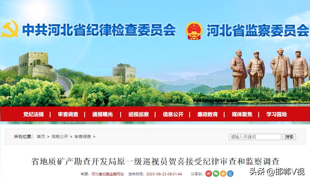 河北省地质矿产勘查开发局原一级巡视员贺喜被查!