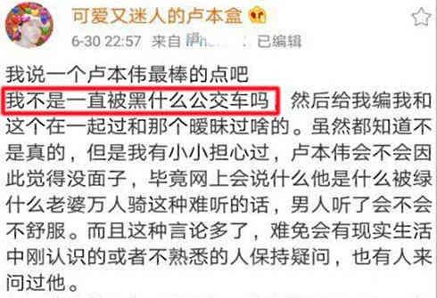 在UU的微博发言中,可以看出,UU是一直知道这个事情的,外面的人骂她,她也一直看在眼里,UU:我不是一直被黑什么公交车吗?然后给我遍我和这个在一起过和哪个在暧昧过啥的。虽然知道不是真的,但是我有点小担心