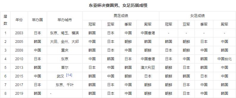 历届东亚杯成绩表
