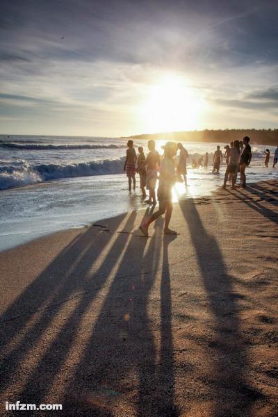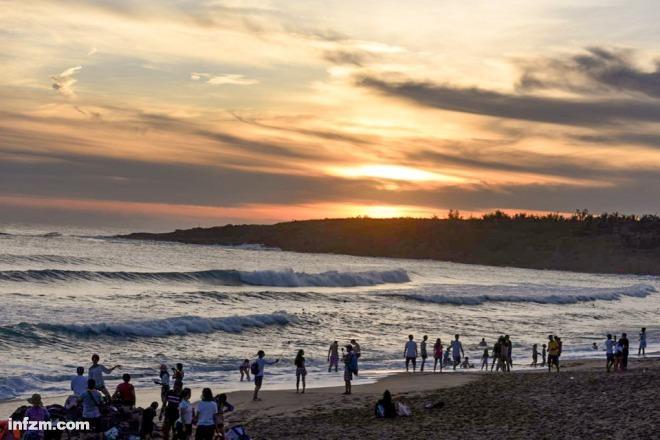 夕阳下,游客的身影留在垦丁白沙湾。(新华社记者 宋振平/图)