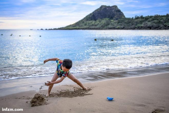 小孩在垦丁公园小湾沙滩玩耍。(新华社记者 李响/图)
