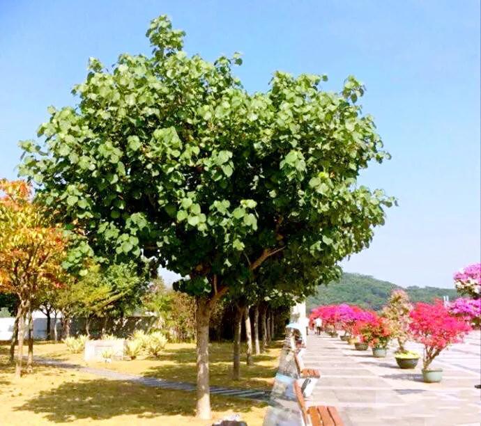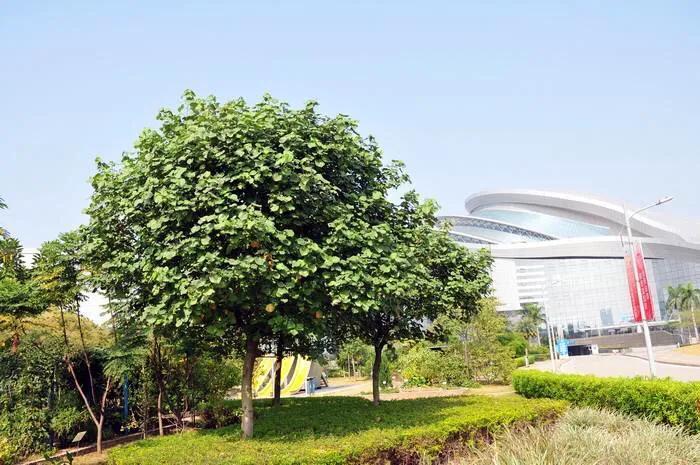黄槿四季常绿,树冠伞形,树姿优美,枝叶茂盛,花多色艳,花期甚长,是常见的木本花卉,优良的庭园观赏树种。