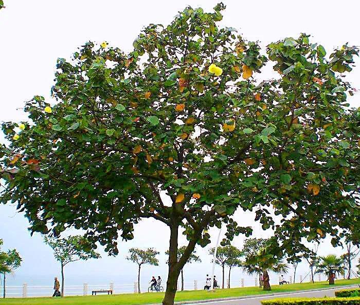 黄槿·别名:桐花、朴仔、榄麻、海麻、海罗树、糕子树、盐水面荚果等。锦葵科、木槿属常绿灌木或乔木,高4-10米。