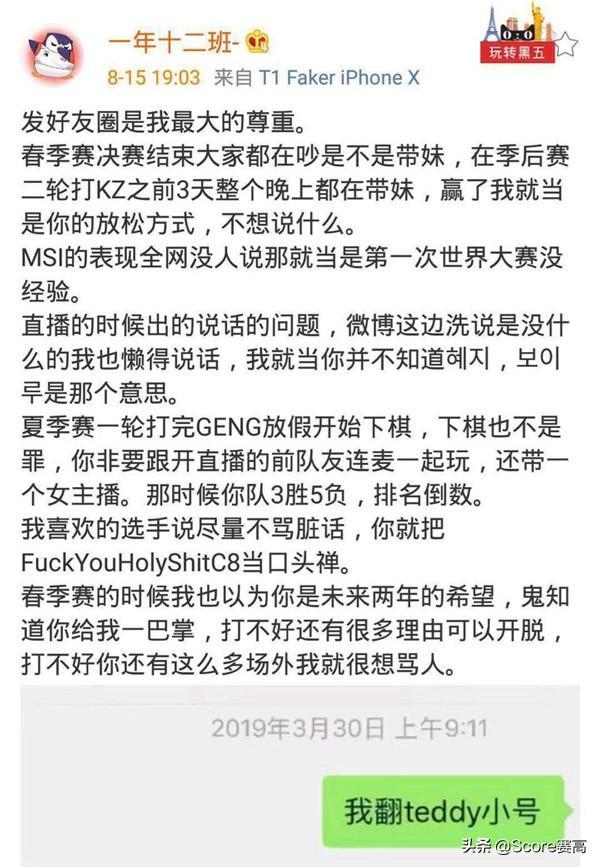 赛后,微博“一年十二班”爆料,Teddy带妹下棋,而且还有一堆场外的事情,截图如下。