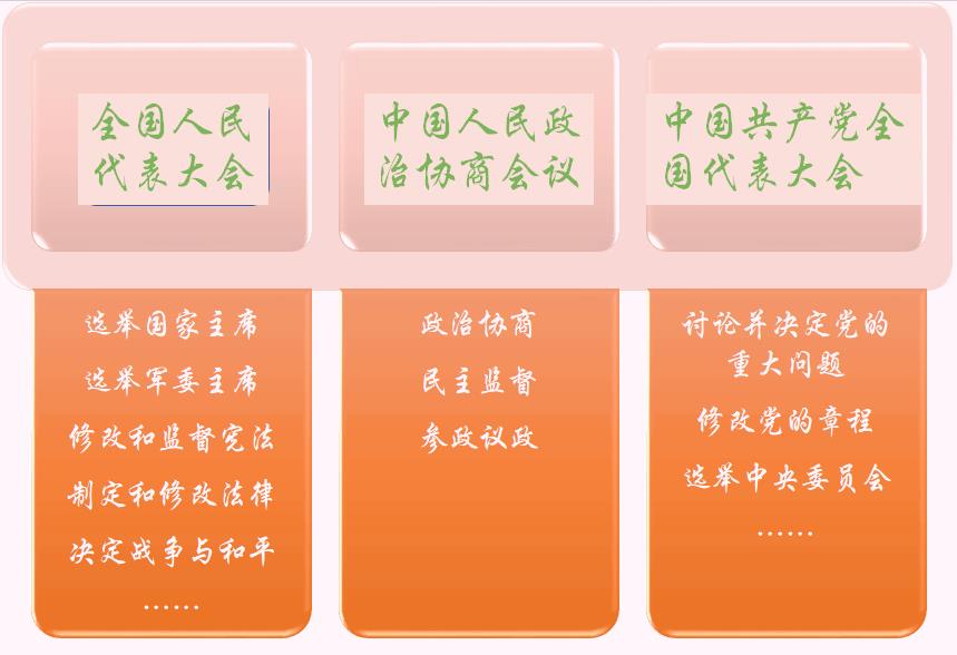 “两会“职责也各不相同,全国人民代表大会是中国最高国家权力机关,主要职责是修改和监督宪法,选举出国家领导等。中国人民政治协商会议主要职能是政治协商、民主监督、参政议政。