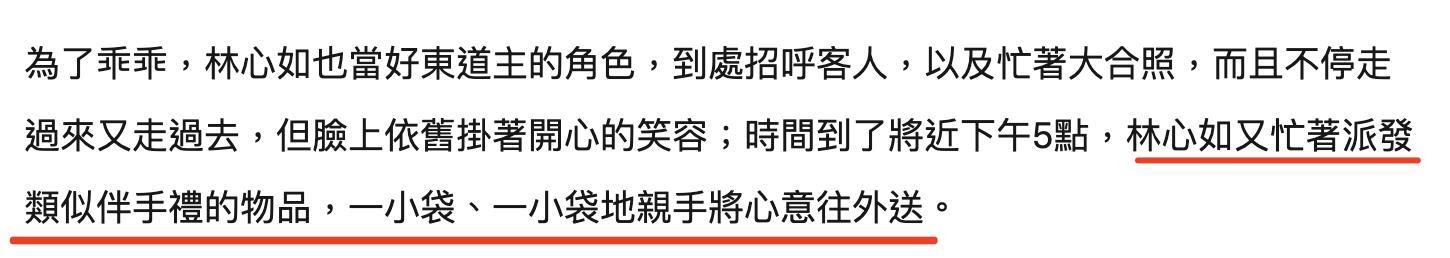 下午将近五点的时候,生日宴会结束,林心如忙着送客,也给每个家庭送上了伴手礼。此次女儿的生日宴,林心如霍建华没有邀请太多的明星朋友,主要以女儿的同学和朋友为主。