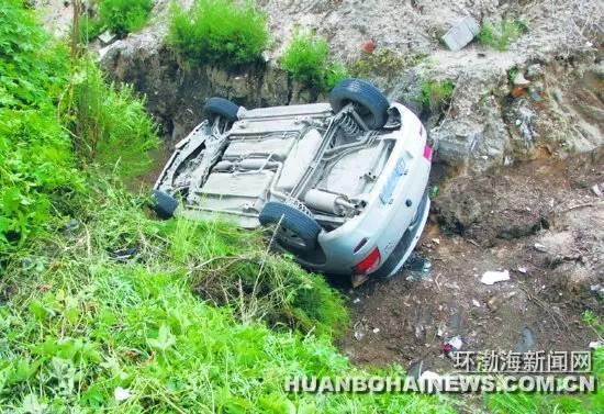 近日,丰南大李路与唐港路交叉口发生一起交通事故,一辆轿车与一辆摩托车相撞,轿车四脚朝天躺在路边沟渠中,摩托车驾驶人受伤。