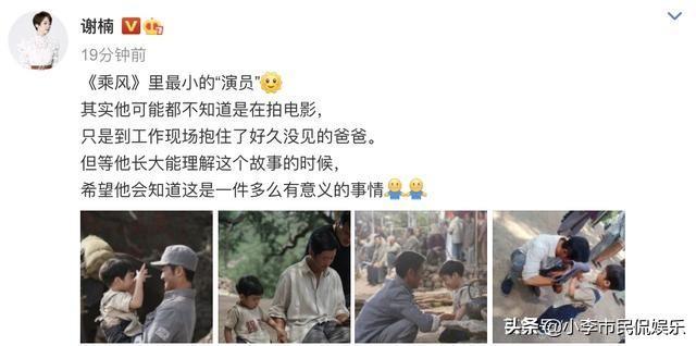 谢楠在微博里晒出了多张吴京和吴老二在电影《乘风》片场的照片,谢楠表示,其实吴老二不知道是在拍电影,只是到工作现场抱住了好久没见的爸爸。但等他长大能理解这个故事的时候,希望他会知道这是一件多么有意义的事情!