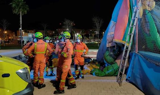 西班牙瓦伦西亚省一个市镇发生充气城堡夺命事件。当局5日表示,公园里的一个巨型充气城堡前一天晚间遭强风吹起,固定绳索松脱,导致整个城堡腾空了数公尺,一名8岁女童瞬间被甩到空中,头部撞地身亡,而另外8名儿童也分别受到轻重伤。
