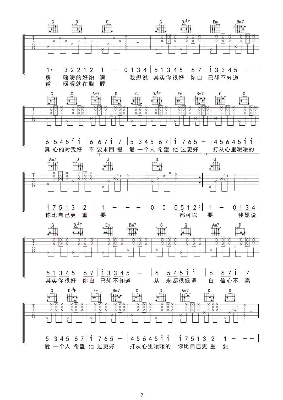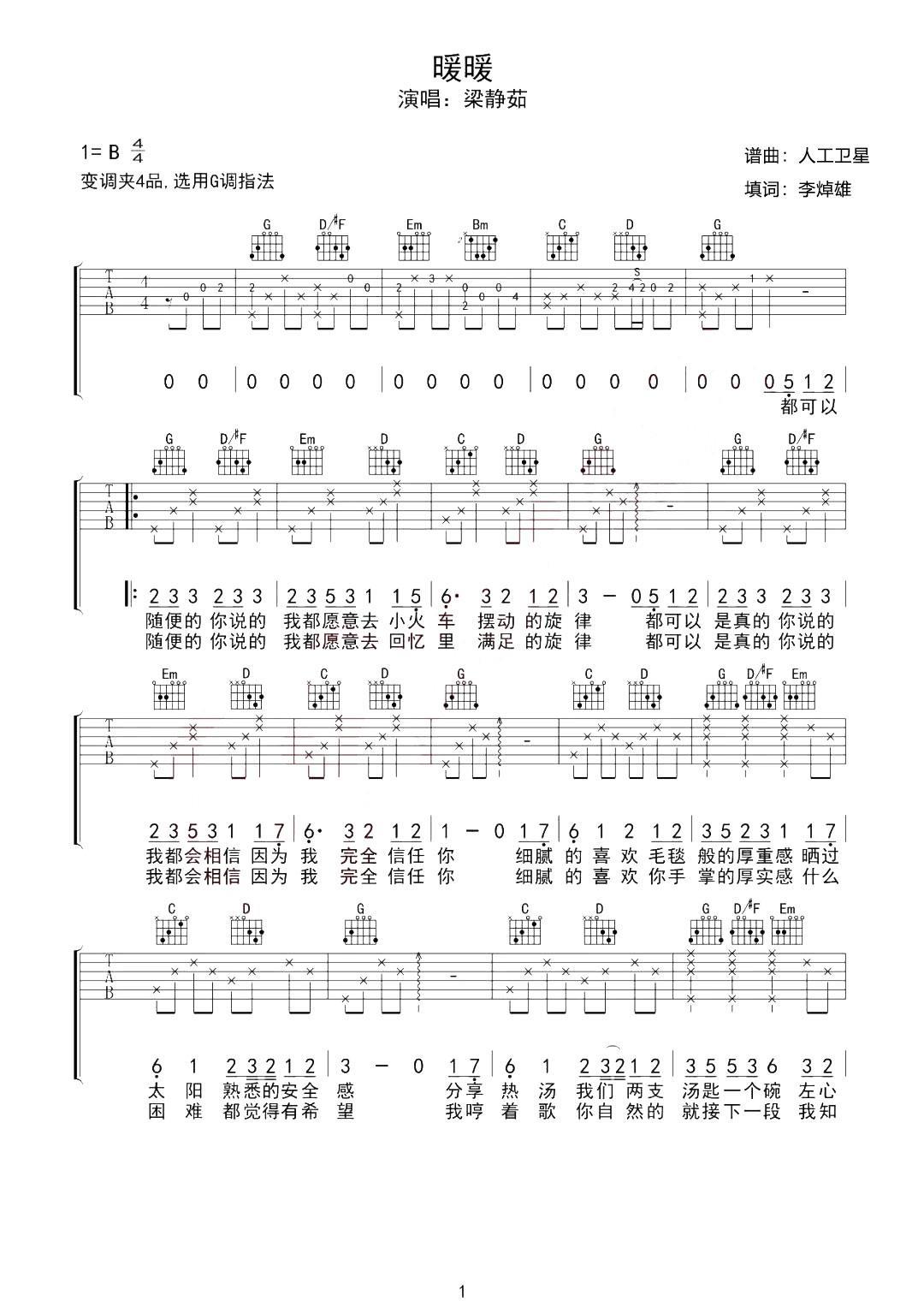 梁静茹《暖暖》吉他谱