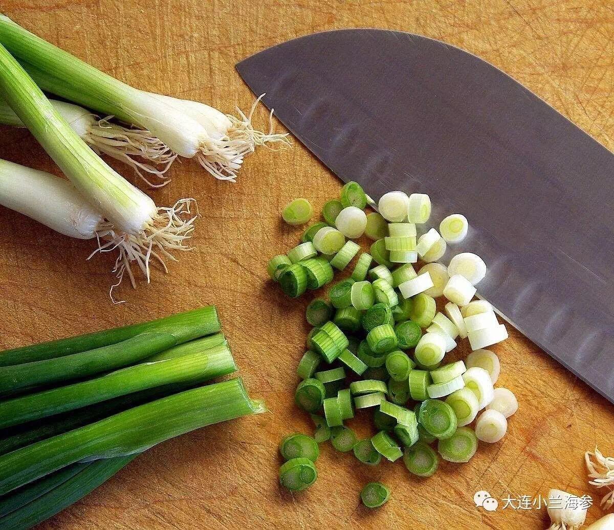 4、将锅中倒入油,待油温上升后放入切好的葱花、鸡蛋、海参花,加入适量的盐即可。