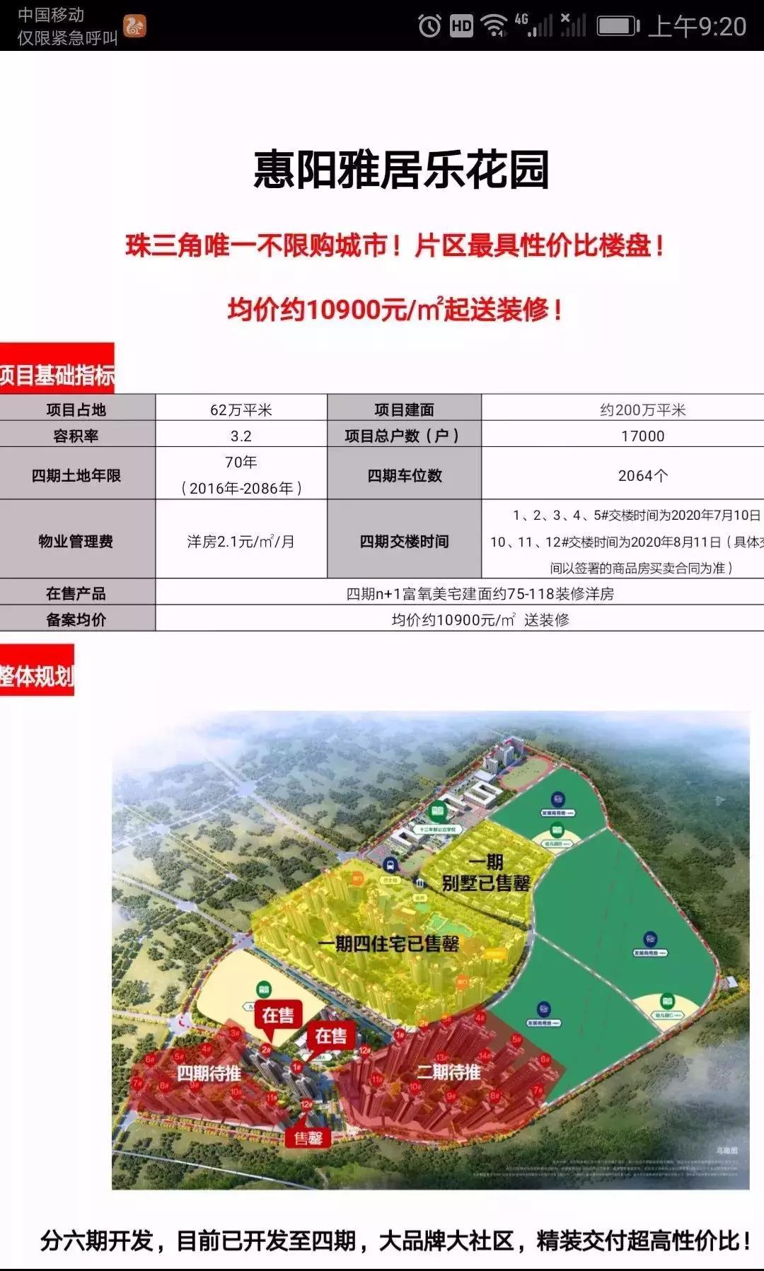 惠阳雅居乐花园共分6期开发,总占地面积达62万平方米,总建筑面积200万平方米,在售四期晨麓住宅,75平方到118平方。