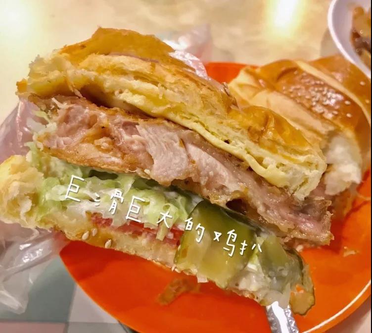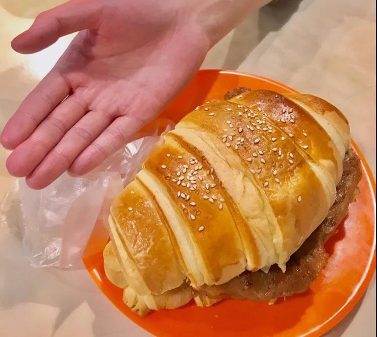 牛角包又大又脆,有酸青瓜和青菜搭配 爽口不腻
