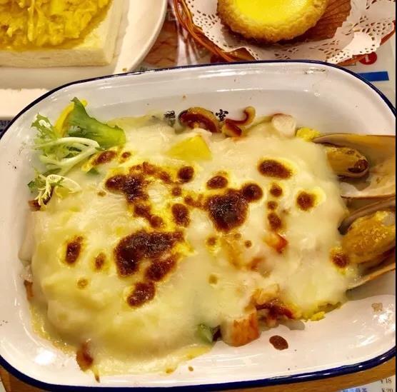 海鲜焗饭,作为主食还是不错的,用料分量很足