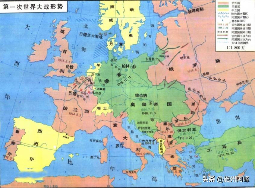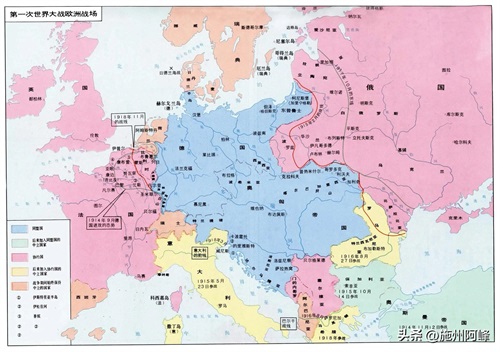 然后在欧洲就形成了以德国、奥匈帝国、意大利为主的同盟国,还有以英国、法国、俄国为主的协约国,两个军事集团。