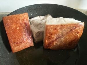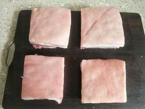 1.漂亮的大片五花肉才是正确的,不要买那种切成条状的肉,那种不好煎,太窄的肉炸的过程中会倒。