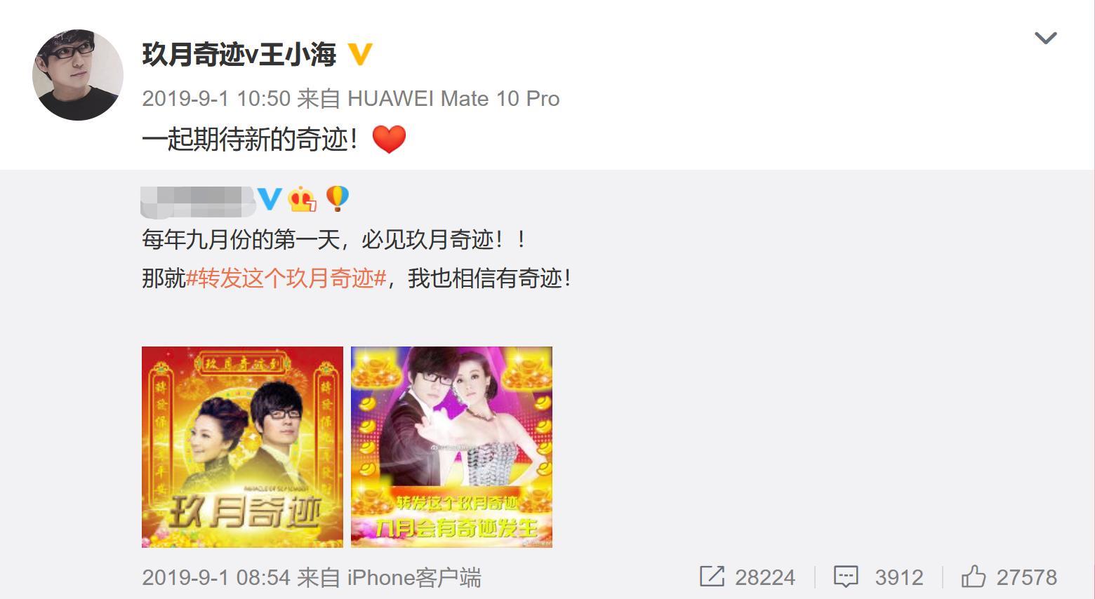 去年9月1日,王小海转发了:“每年九月份的第一天,必见玖月奇迹!”的内容,但今年,王小海和王小玮都未发布相关内容,这让两人的关系,确实显得更加扑朔迷离。