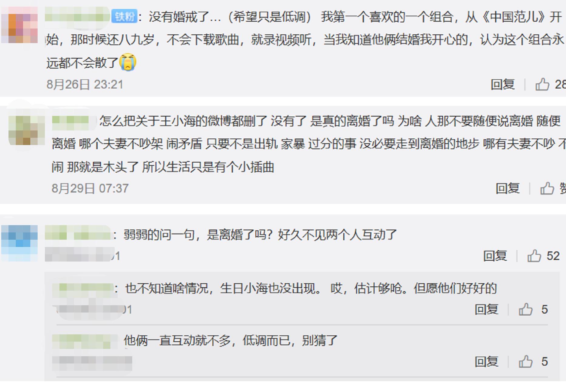 同时,还有信息显示,夫妻俩合开的公司,也处在散伙的状态。更有网友发现,在王小玮的微博里已经没有关于王小海的内容了。