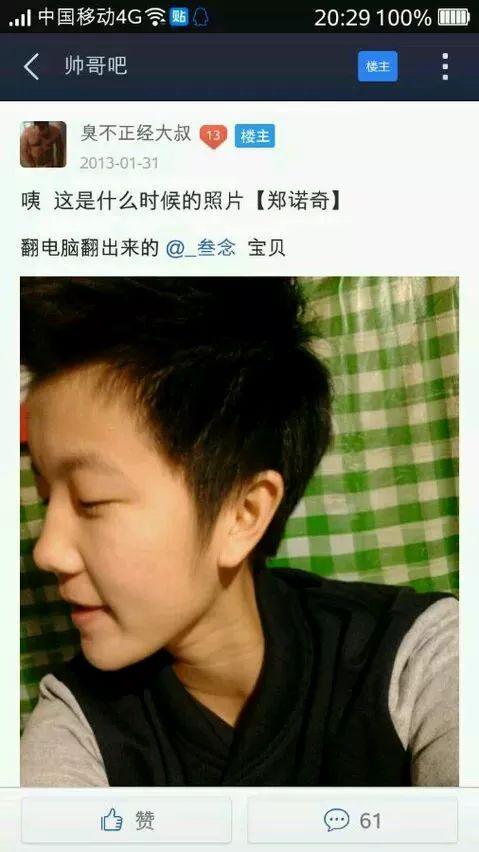 随后,来给大家公布一张郑诺奇的素颜照,妥妥的女生扮相。