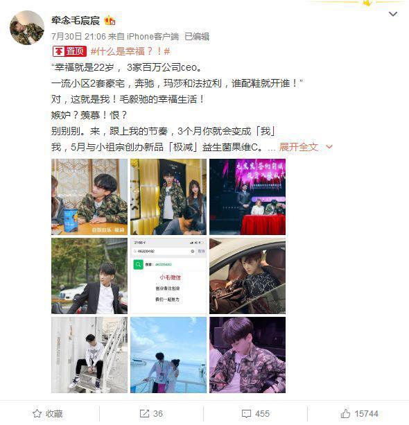 现在的杨清柠(小祖宗)和毛毅驰在一起,这位小伙,22 岁, 3 家百万公司 ceo。一流小区 2 套豪宅,坐骑都是奔驰,玛莎和法拉利一类的豪车。
