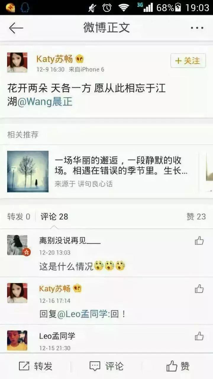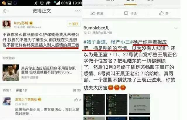 惊奇的是,剧情一下子就反转了。王晨正的正牌女友苏畅爆料:杨清柠是第三者插足,还发微博痛斥她是小三。