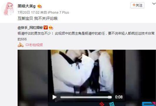 当时还有这么一出,就是快手上还有个网红叫 " 黑暗大美 g",据说当时俩人为了争快手一姐这个称号在微博互爆对方黑历史。