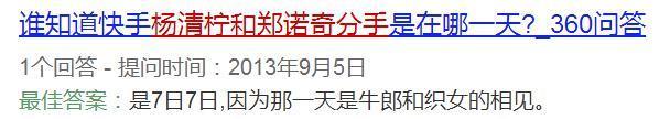 这场闹剧结束之后,杨清柠劈腿了另一个帅哥,和郑诺奇分手,两人还选择在 7 月 7 日这一天分手的,难道说,还想留下一个纪念日?