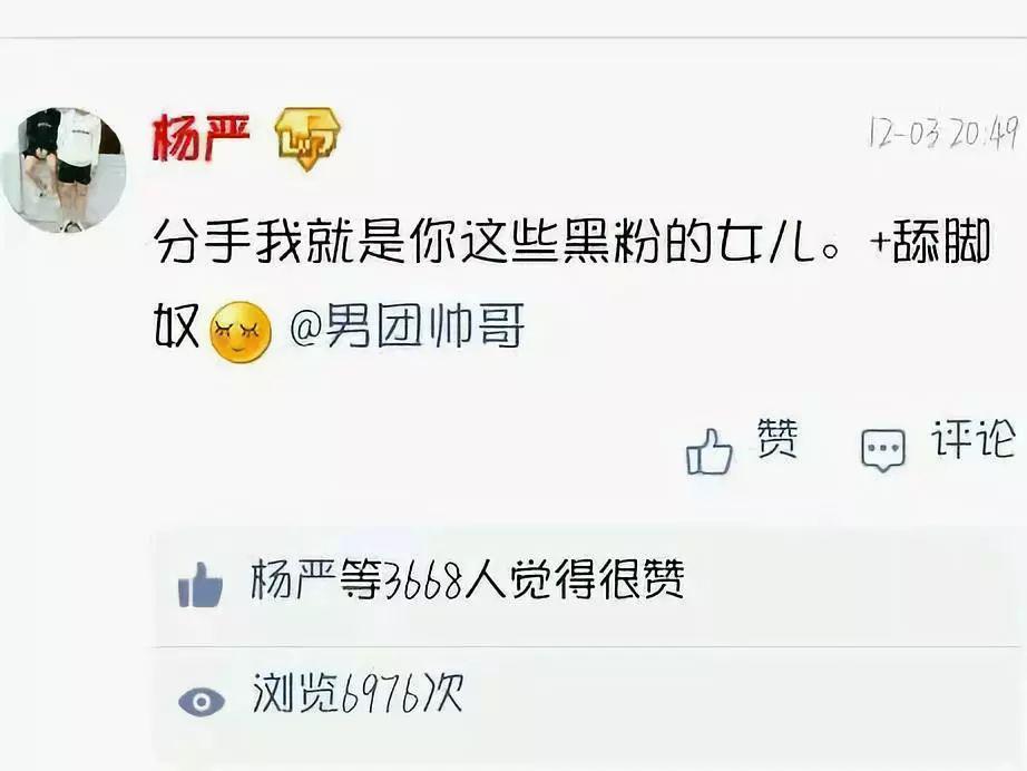 两人在恋爱期间发表各种秀恩爱说说,其中包括 " 分手我就是你们这些黑粉的舔脚奴 "" 分手我王晨正就是你们儿子 " 等等的说说有图有真相。