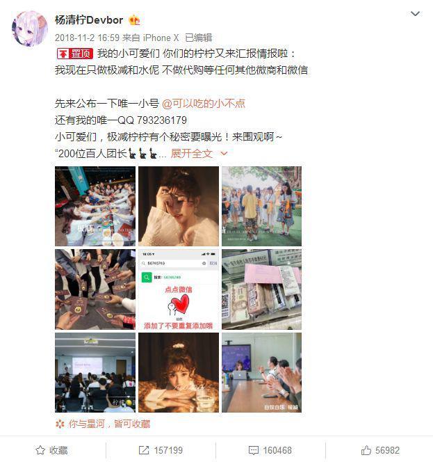 两人在微博宣传:只做极减和水伲,不做代购等任何其他微商和微信。