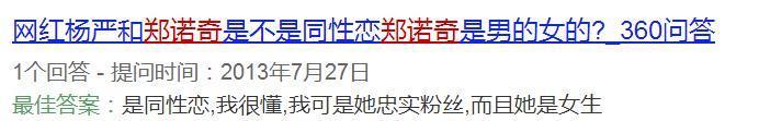 关于郑诺奇,网传:她是同性恋,而且她是女生。