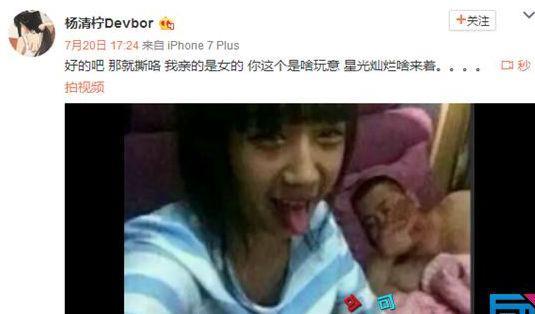 黑暗大美 g 曝光了杨清柠以前和郑诺奇(女)亲亲的视频。