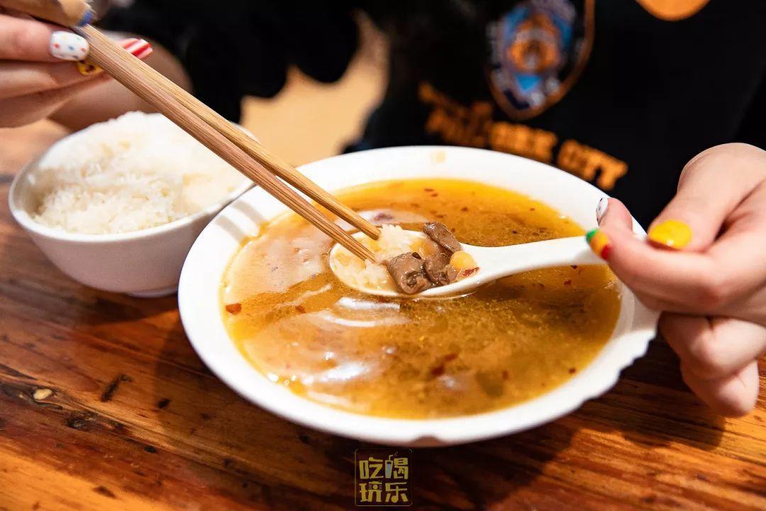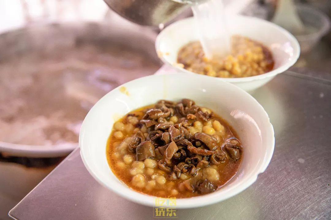 猪骨汤与圆豆熬制底汤,配上一碗蒸熟的糯米。豌豆软烂,糯米粘滑,汤汁油润,鲜咸中略带辣,咀嚼久了能尝到糯米本身的甜味。这大概就是荆州人独爱它的原因吧。