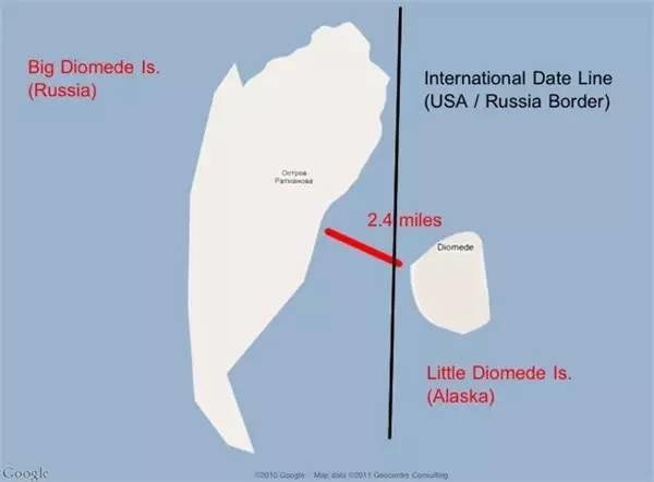 16.左边属于俄罗斯,右边属于美国。国际日期变更线就在这2个岛之间。你要是从一个岛看另一个岛的人的话,你会发现他们活在昨天,而他们看你是活在明天的人……