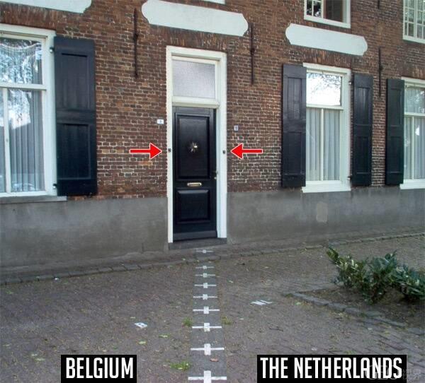 3.你不妨像个孩子一样同时按响两个门铃,然后随便挑一个国家飞快逃开。按响比利时和荷兰交界处房屋的两个门铃,好想知道住在这个房子里的人到底是哪国人?求居住者的心理阴影面积。