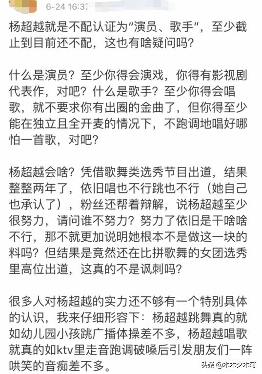 微博认证演员确实没毛病,大家不可否认杨超越一路走来确实很火,也很有热度,自带话题,但是歌手认证,大家却觉得杨超越有点操之过急了,还不如用“艺人”来整体概括一下,也不至于让大家戳到她的短处。