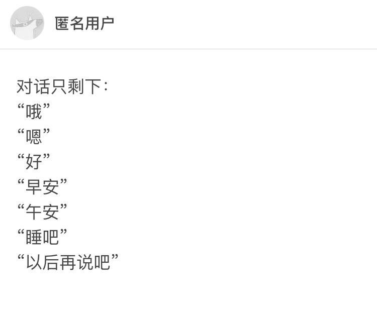 有时侯想,人也真是可怜,喜欢的人得不到,得到的不珍惜,在一起时互相猜忌,失去后却独自怀念,怀念的盼望相见,相见的恨晚,终其一生,都满是遗憾,所以不得不放弃。