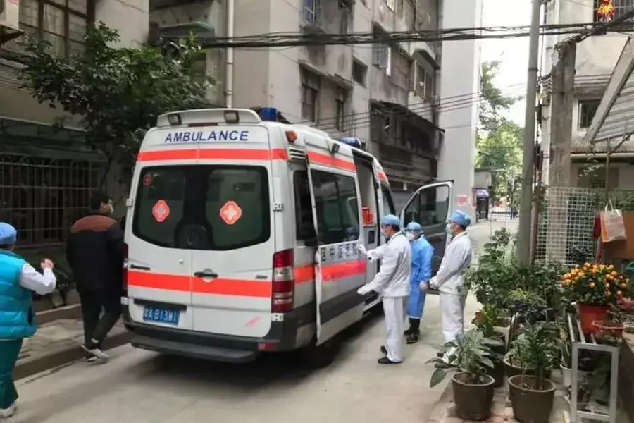 急促的警笛声打破了小区的平静,只见一辆救护车停在一栋楼前,一个老妇人急忙将医护人员带上楼。
