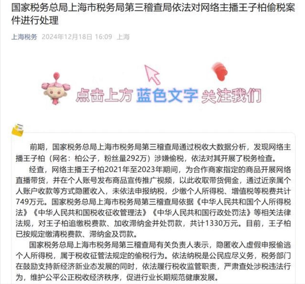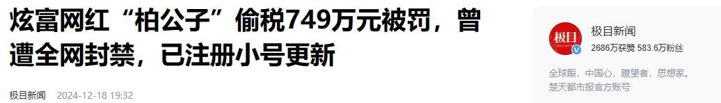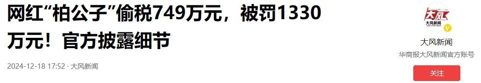 到时候她母亲再去线下把钱取出来,这样一来就躲开了税收,说直白点就是把钱转移到亲人账户上,利用漏洞偷税,最后税收部门针对柏公子的违法行为,依法对他做出处罚,总共罚款1330万元,现在在社交媒体上已经搜不到他了。