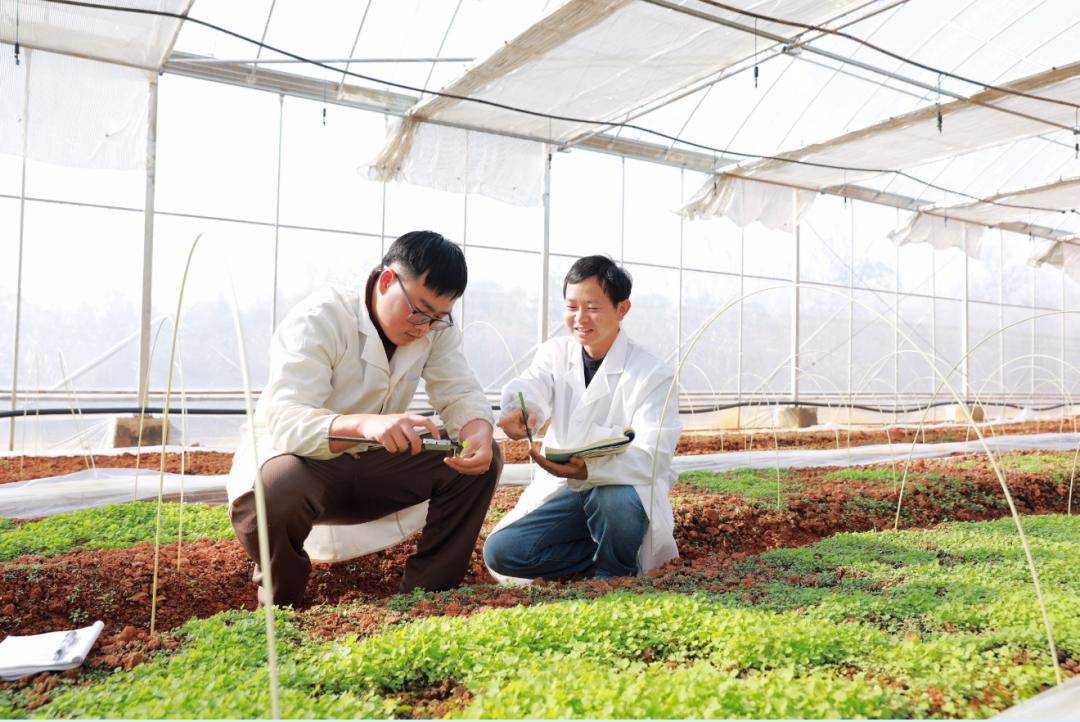 陈谦(右)正在观察记录幼苗的生长情况。刘珂摄