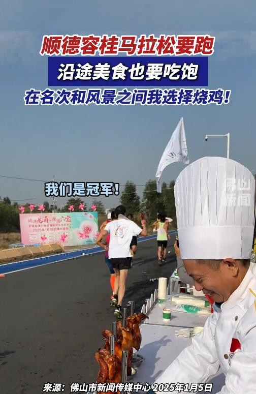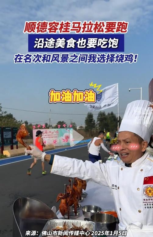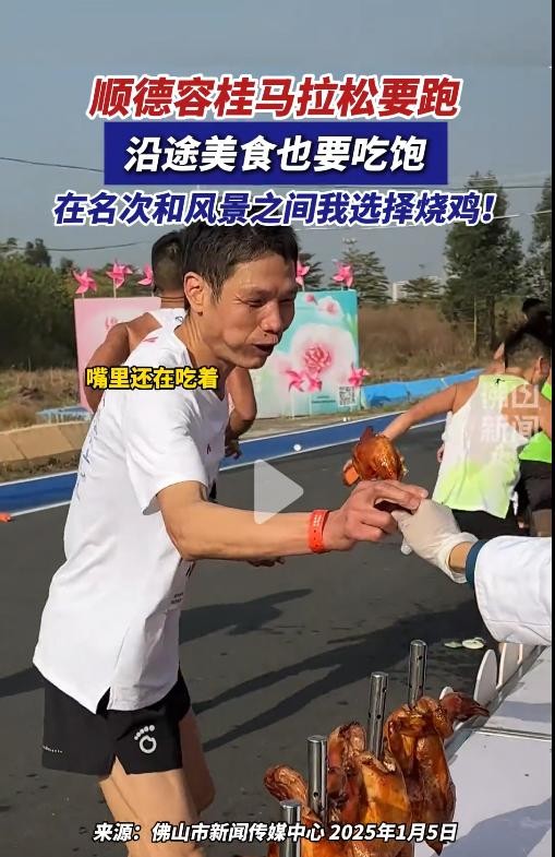 这一幕让旁观的路人和观众纷纷笑出声,大家感叹道:“这哪里是在跑马拉松,简直是在参加美食节!”比赛的节奏被烧鸡的香气打破,而赛道上的气氛也变得格外温馨与欢乐。