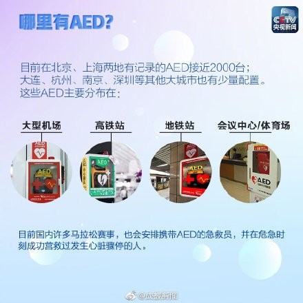 专家表示,AED设备的及早介入对于抢救成功率极为重要,每提早一分钟除颤,心肺复苏的成活率可以提高7%至10%,另外及时进行人工按压心肺体外复苏,也是有效手段。总之,急救越早,救治成功率就越高。记者走访发现,如今越来越多的商场、高校都已经在醒目的位置,安装了自动体外除颤器(AED)设备,例如清华大学今年就有341台AED设备在校园内安装到位。