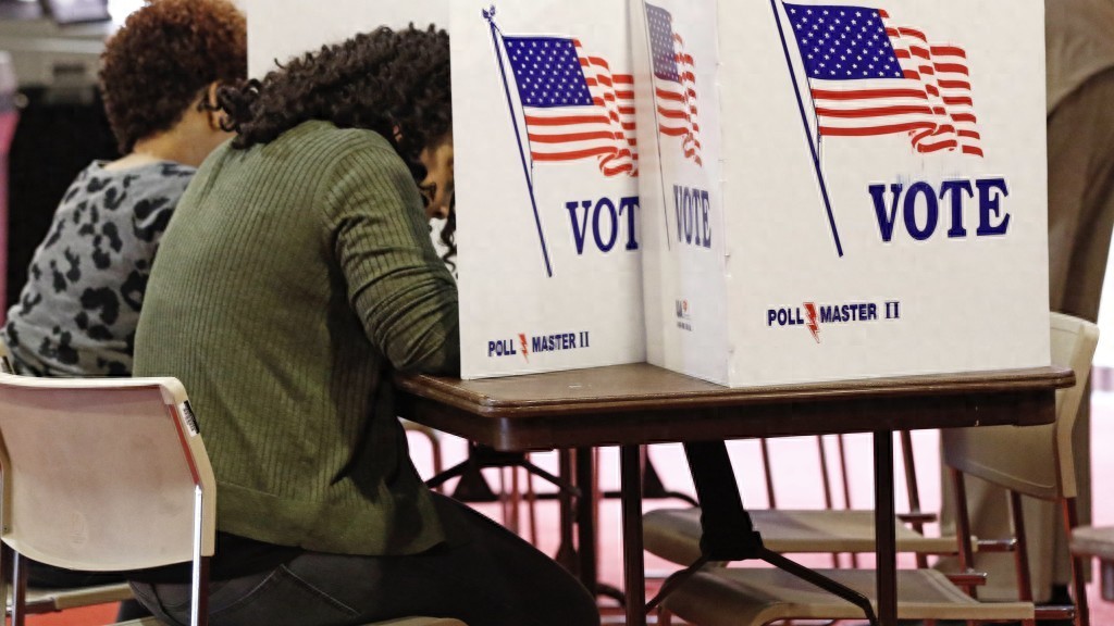 2020年美国总统大选,密歇根州选民填写选票。密歇根州是2024年大选7大摇摆州之一。 美联社
