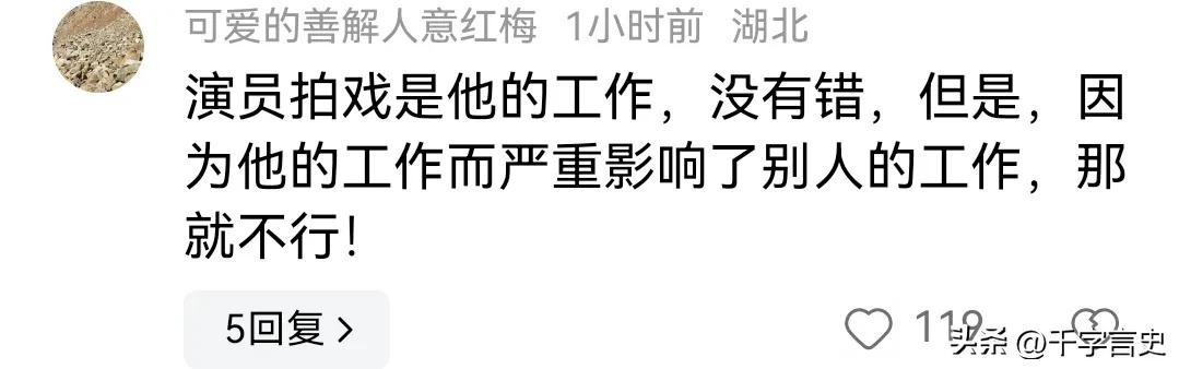 “演员拍戏是她的工作,没有错,但是,因为他的工作而严重影响别人的工作,那就不行!”