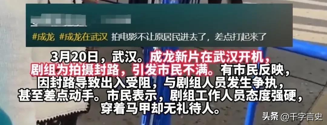 近日,著名影星成龙率领的剧组在武汉江夏区拍摄新片《陌生家庭》时,因封路拍戏,引发了市民的强烈不满,甚至发生了冲突行为,这件事引起了社会的广泛关注与热议!