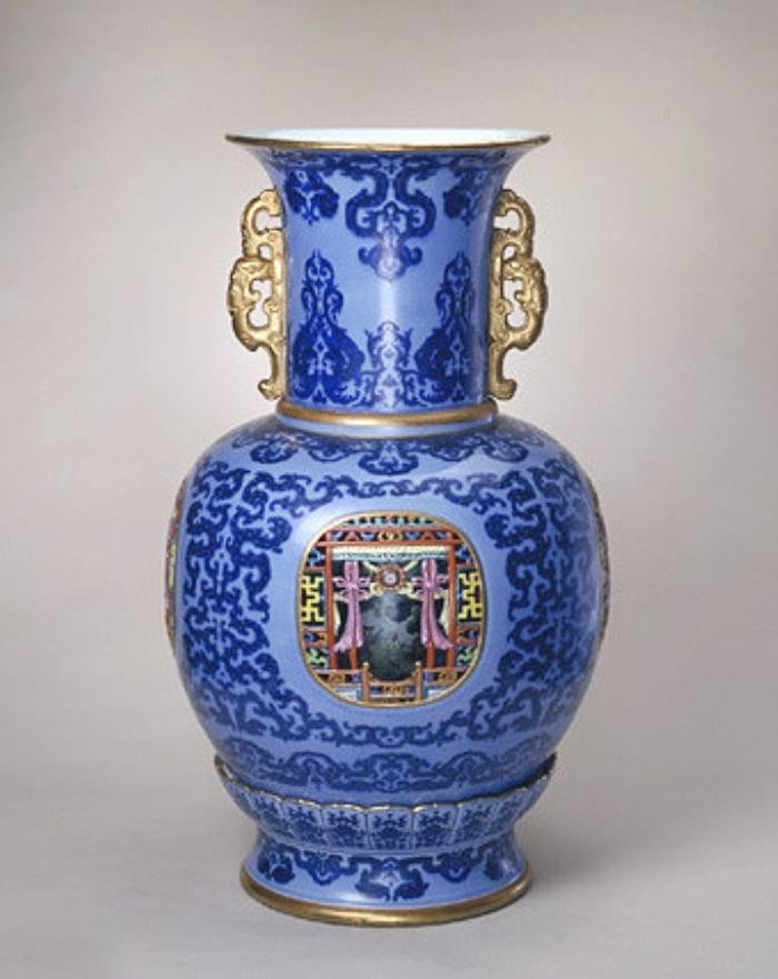 珐琅彩瓷的正式名称应为“瓷胎画珐琅”。是国外传入的一种装饰技法,后人称“古月轩”,国外称“蔷薇彩”。是专为清代宫廷御用而特制的一种精细彩绘瓷器,部分产品也用于犒赏功臣。