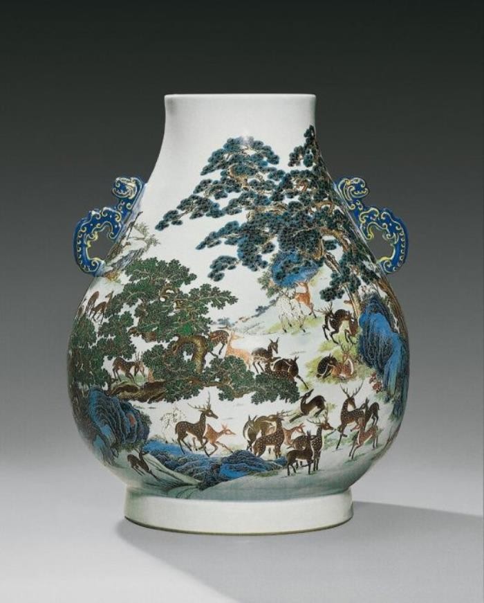 亦称“异光变彩釉”。釉色随光源不同而变化。以高级细瓷的白釉釉料作基釉,以金属氧化物、非金属氧化物及铈、镨、镱等混合稀土氧化物为着色元素,经一定工艺处理,制成釉浆,施于坯体表面,在适当的烧成温度下,产生物理与化学变化,生成一种新的固溶体。